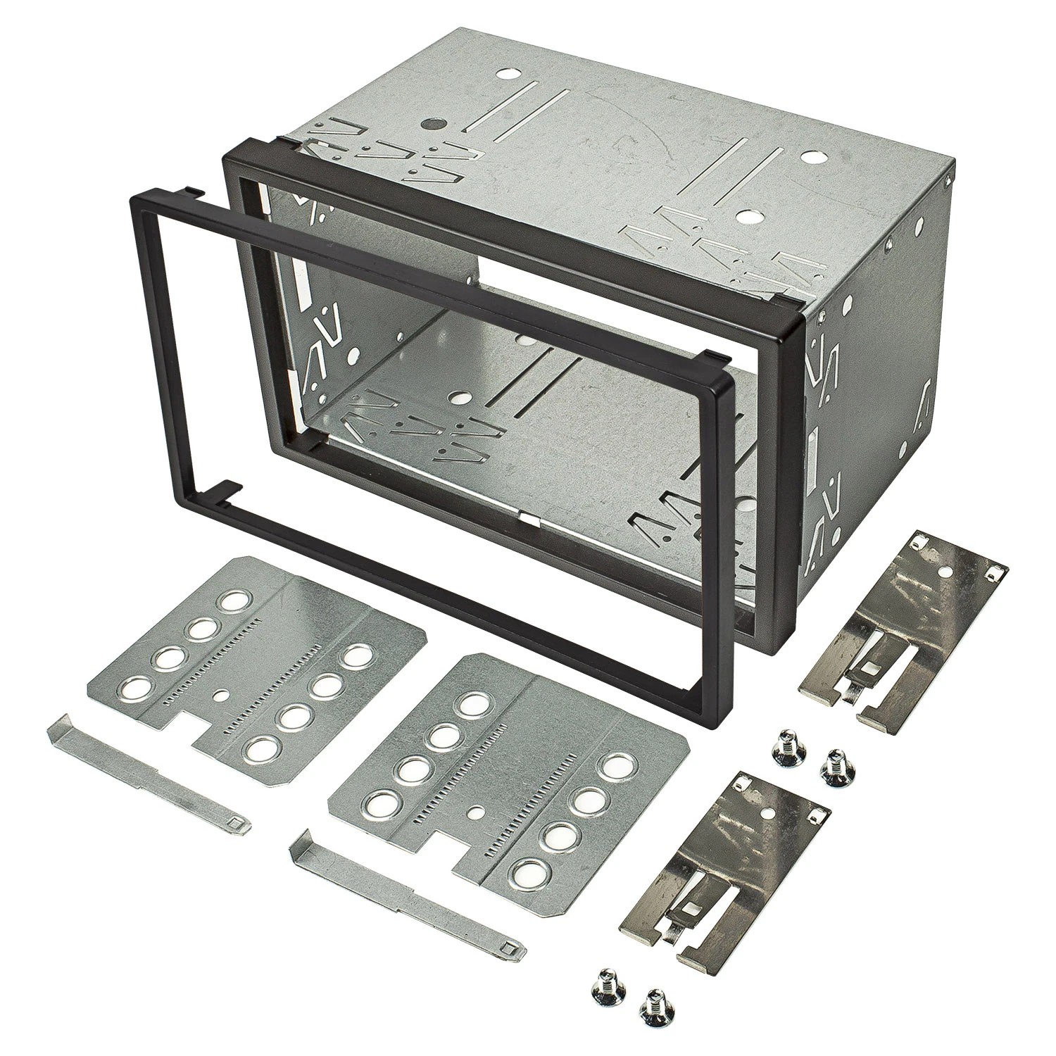 • Installations Kit für Doppel-DIN Radioblenden. Das Kit enthält 2 wechselbare Kunststoff Abdeckrahmen, somit passend für nahezu alle gängigen Markengeräte und für viele China Android Geräte. Inhalt dieses Set : Metallrahmen, 2 Stück Abdeckrahmen, Befestigungsmaterial, Entriegelungsbügel