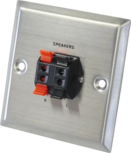 Sehr hochwertige Lautsprecheranschlussblende für zwei Lautsprecher.
