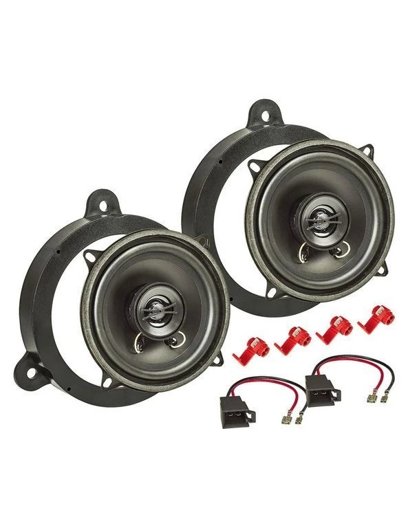 • 130mm Lautsprecher Einbau-Set bestehend aus 2 Lautsprecher, 2 Lautsprecherringe, 2 Lautsprecheradapter, 4 Kabelklemmen