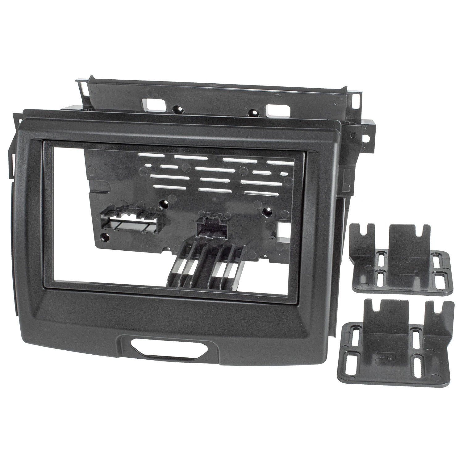 Da die Einbauöffnung nach dem Ausbau des originalen Radios meist zu groß für Ihr neues Doppel DIN Radio ist, benötigen Sie dazu unter anderem diese Radioblende (Einbaublende, Radiohalterung, Einbauschacht, Autoradioblende). Mit dieser Radioblende füllen Sie den überschüssigen Raum bis auf das 2-DIN Maß aus, sodass dem Einbau eines handelsüblichen Radiogeräts nichts mehr im Wege steht.