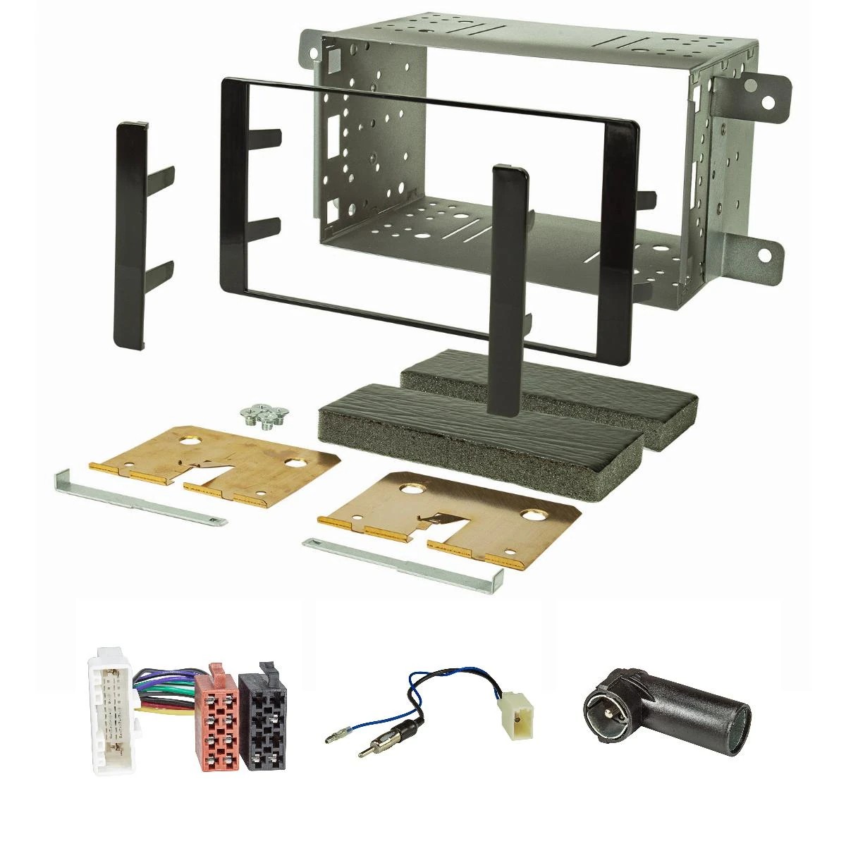 Da die Einbauöffnung nach dem Ausbau des originalen Radios meist zu groß für Ihr neues Doppel DIN Radio ist, benötigen Sie dazu unter anderem diese Radioblende (Einbaublende, Radiohalterung, Einbauschacht, Autoradioblende). Mit dieser Radioblende füllen Sie den überschüssigen Raum bis auf das 2-DIN Maß aus, sodass dem Einbau eines handelsüblichen Radiogeräts nichts mehr im Wege steht.