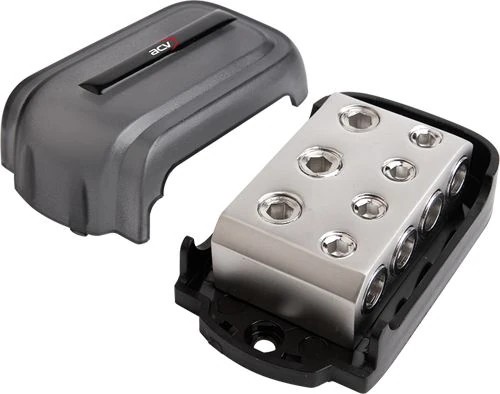 Der Verteilerblock wird in der Car Hifi Installation für die Unterverteilung benötigt wie zum Beispiel beim Anschluss zweier oder mehr Endstufen an ein Batteriekabel. Verteiler gibt es als Masseverteiler oder auch als Sicherungsverteilerblöcke mit Anschlussmöglichkeiten für die unterschiedlichsten Querschnitte von Kabeln.